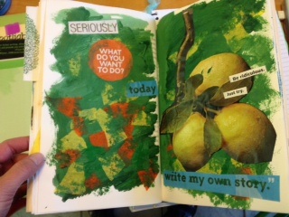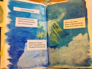 As I was cleaning my classroom this week with no more gifted services for my students, I pulled out my altered book. I decided to use it to gather the poems I had written alongside my students during the year. I would gesso a page, then work on something else, come back and paint the page, then glue on the printed poem. What fun to add a little interest to these last boring, chore-filled days. Students came in and out to talk, play on the computer, or join me in painting. A satisfying, creative end to the school year.