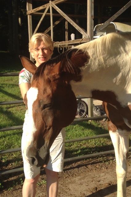 I met her out at the barn. The largest horse, Jackson, is so sweet. I was petting him, then turned to walk away. He came out of his stall and nudged my back for more petting. I am not accustom to horses, so I wasn’t sure how to react. He didn’t care. He continued to be affectionate. Maggie took this picture of us.