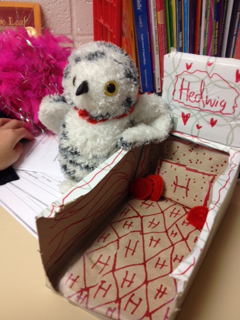 Hedwig’s story: A few years ago one of my students, who was a huge Harry Potter reader, was struggling with writing. He just wouldn’t. I was shopping at Barnes and Noble and decided on a whim to buy a stuffed owl, Hedwig from the Harry Potter series. Matthew became totally attached to the owl. Hedwig stood on his shoulder whenever he was writing.