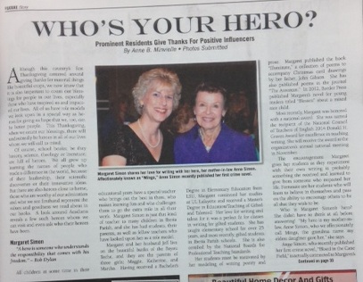 In our household, if you make it into our local paper, you are famous. I made it into a local free magazine, Acadiana Lifestyle. The writer Anne Minvielle called me about 6 weeks ago asking me about my hero. She was doing a feature on local heroes’ heroes. I didn’t have to think long. My hero is my mother-in-law, Anne Simon. I’ve written about her a few times on this blog.
