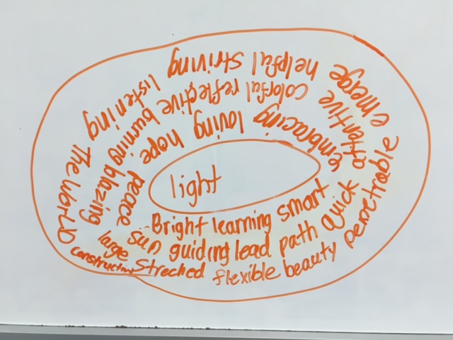 Reed used a white board to share his word web around his word Light. I love how the design of the word web looks like a light.