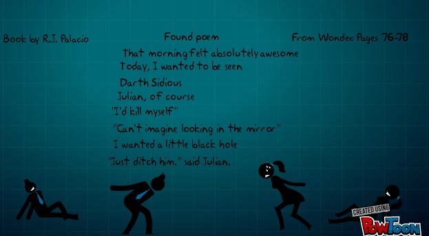 I want to share some of the found poems, a Powtoon, and an Animoto trailer.