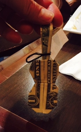 My brother, Hunter Gibson, is a musician. He was featured in The Clarion-Ledger this week. Friday night many of us gathered to hear him play and sing. Jack, my 10 year old nephew, and I made origami with dollar bills for the tip jar. Jack made an elephant and I made a guitar. I celebrate creating with Jack and in giving to Hunter.