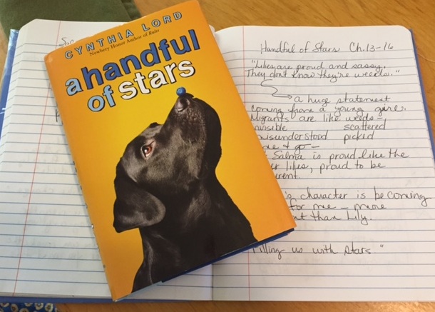 I kept this model for teaching writing all these years, but I hadn’t thought about applying it to reading. This week I have participated with an amazing group of teachers in a cyber book club around Cynthia Lord’s Handful of Stars. I was not intimidated about joining in because I had already read the book once. Also, my friend Julianne Harmatz was spearheading the project, and I wanted to support her efforts. I had no idea that it would change my entire philosophy about teaching reading.