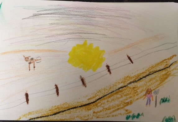 On a field trip on Friday, Madison drew this picture from an art piece she saw in the gallery. Look closely. The details on the tiny girl in the foreground, and notice the motion indication on the cow’s tail. When I saw her drawing, these little details delighted me.
