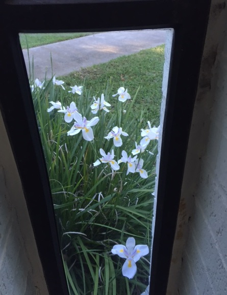 I am writing a poem a day to images. This is a picture of flowers growing in our front flower bed taken through the arrowslits in the entryway to our house. Our house is like a castle, complete with a turret with arrowslits. When I Googled arrowslits, I the word embrasure came up as a synonym. Here is a draft of my first ever abecedarian.