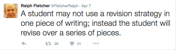 My students do this, too, as they type their pieces into the blog. Many of them are resistant to the two steps of rough draft in their notebooks, then typing into a final draft. But as I watch them, I see that revision becomes organic to this process.