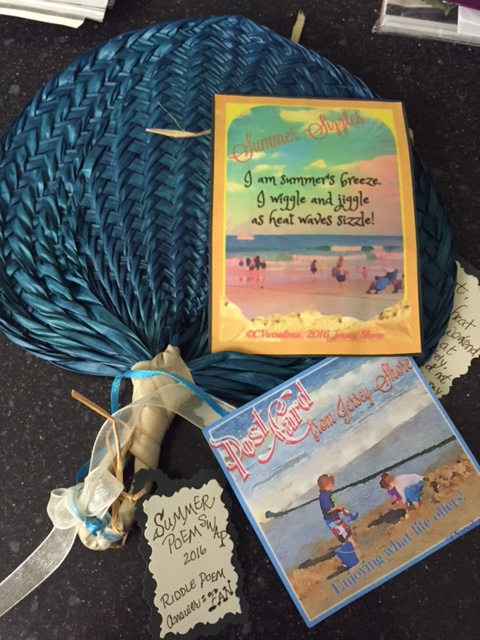 I celebrate the summer poetry swap. I got this gift from Carol Varsalona. Carol has a unique talent of pairing photos with poems and creating timeless images. Her poem is a riddle poem about a fan. I can use a fan when temperatures climb to 90+ daily, but this one is too pretty to use. She also sent a necklace of handmade beads from paper. Carol wrote, “The women in Masese, Uganda wove the beads from paper that is hung to dry. With the proceeds we built an elementary school where 550+ children are educated, fed two meals a day, and have clean water. The mothers of Masese are proud jewelry makers who now can make a living to raise their children.” I will proudly wear the beads. Thanks, Carol.