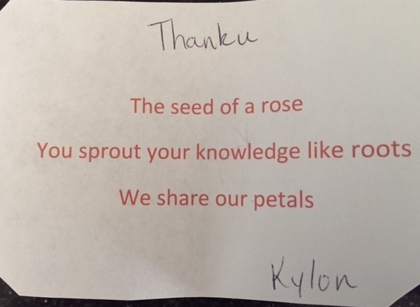 Cleaning out also leads to memories. I found this Thanku poem written by Kylon when he was in third grade. I think he’s in 8th grade this year.
