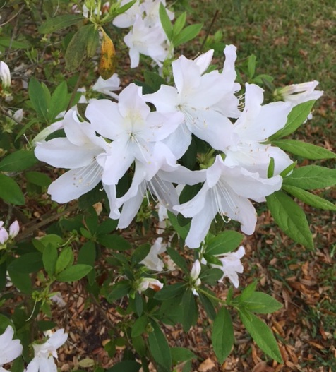 4. I enjoyed the last of the azaleas blooming on my walk Friday morning.  These white ones open their eyes and spread pure Joy.