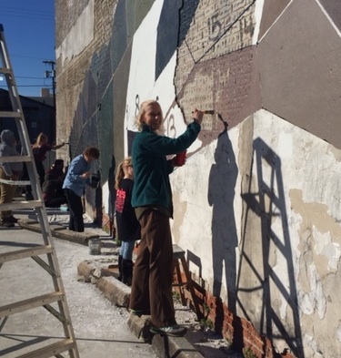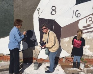 Last week I wrote a post about a mural being painted downtown by Mary Lacy from Vermont. She has made great progress on the alligator; nevertheless, an invitation was sent out for a painting party. I was excited about this event. I wanted to leave my own mark on this city icon.