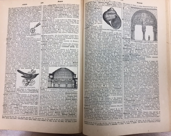 The “big whopping dictionary” an antique two-volume dictionary that we used to find root words for fractal poems.