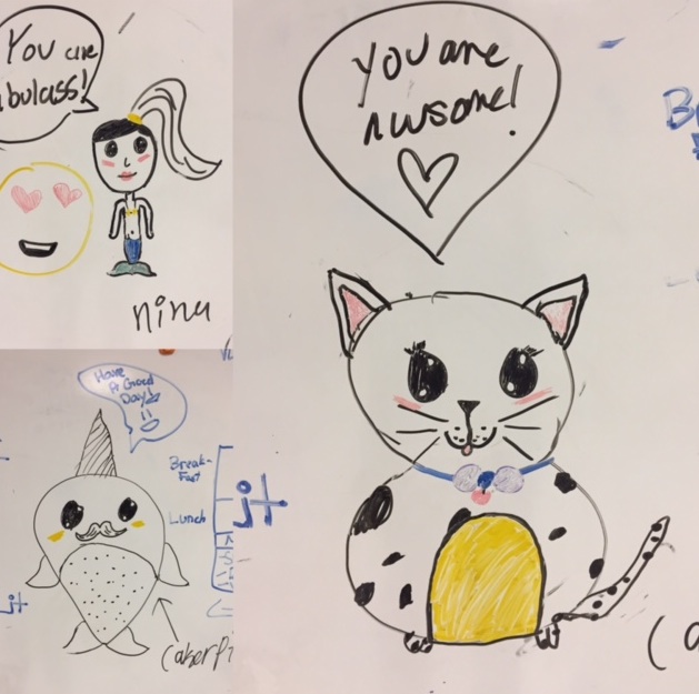 One of my students started drawing a picture a day on the whiteboard. Here’s a collage of her drawings: