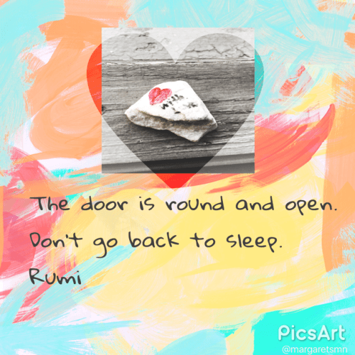 This weekend my husband and I attended a wedding for a friend’s son. We enjoyed relaxing and not being in charge of anything. During the ceremony, the priest read a Rumi poem and talked about how this couple was crossing the threshold to a new world, a world that they would live in together.