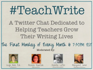 Be sure to join me in the new #TeachWrite chat on Monday, August 7th at 7:30 EST. For more information and a list of questions, go to #TeachWrite Chat.