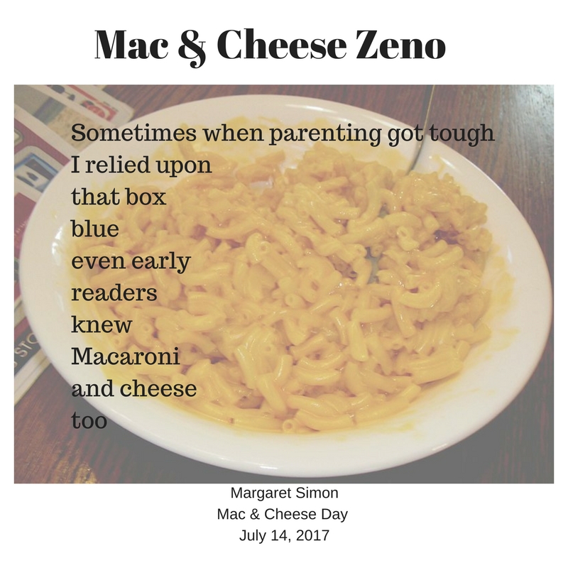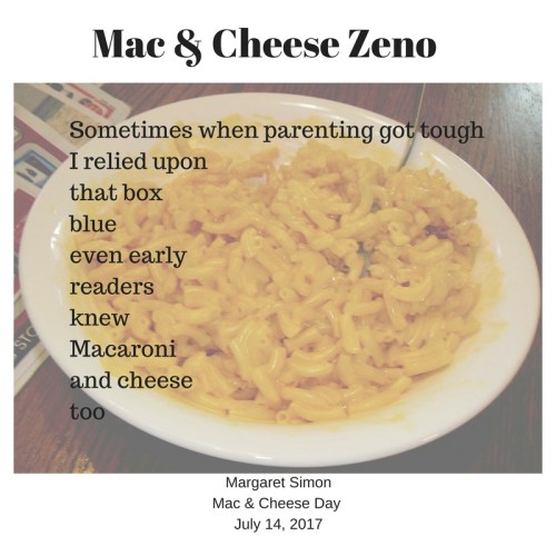 Tabatha sent out a call for a poetic celebration of Mac&Cheese for today, National Mac&Cheese Day. I stopped making Mac&Cheese long ago when my girls began to understand and worry about nutrition. Mac&Cheese is packaged processed food, Mom. Don’t you know it contains chemicals?