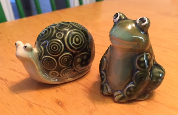 Tabatha also coordinates the Summer Poetry Swap. This week I received a most precious set of salt & pepper shakers for my bayou home from Irene Latham. She also sent a wonderful Nikki Grimes’ style word exploration poem in honor of my recent work-in-progress, Bayou Song. Thanks, Irene for brightening up a rainy summer day on the bayou.