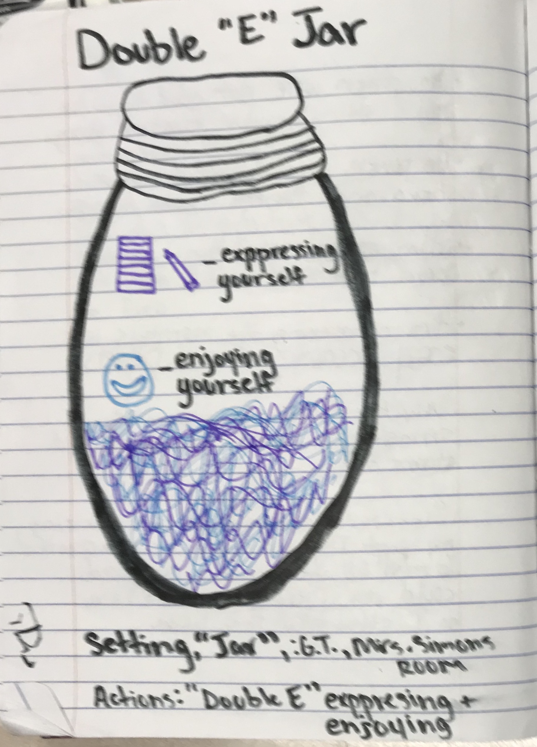 I am a co-moderator with the #TeachWrite chat on Twitter. (Note the graphic on the side bar.) One of my colleagues in this endeavor is Michelle Haseltine. Michelle put a photo on Facebook of a journal page from one of her students. The page was filled with the outline of a jar and words and sketches were drawn inside the jar.
