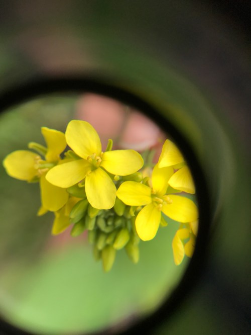 Equipped with jeweler’s loupes from The Private Eye kits we ventured to the garden for “research “. I had my phone with me and enjoyed taking photos by holding the jeweler loupe up to the lens.