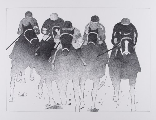 This drawing has been in my files since the beginning of the month. I’ve passed over it again and again, not because I don’t love it, but because I have no experience with horse racing. I mean, none! I’ve never been to a horse race. I’ve never watched horse racing. It is a total foreign experience to me.