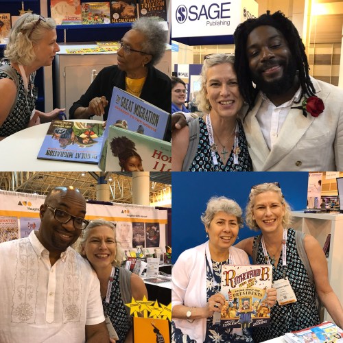 I looked at her name tag, “Gienah.” She immediately pronounced it for me, “Gina,” and told me her father named her for a star. I said that sounds like a poem. The star is in the constellation Cygnus, the Swan. Gienah and I spent the next few hours together. Our list of signings matched, surprise, surprise. She fan-girls the same authors I do. We became each other’s photographer. We exchanged phone numbers and are still texting each other today. Making a new friend is so much fun.