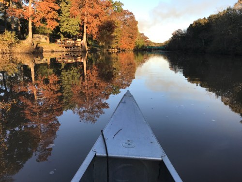 Sunday afternoon was so gorgeous we had to stop and take a canoe trip down the bayou. The temperatures were in the 70’s which we won’t likely see again for a while as December begins to roll in on cooler waves. I really believe that the cypress trees are more beautiful this year with their bronze needles that still cling to the branches. We stopped by a neighbor’s house and chatted with her while a fat water snake slithered from a nearby bush. Yes, it freaked me out, and I became jumpy. Everything became a snake: branches, leaves, jumping fish, scurrying squirrels. But soon my heebie-jeebies subsided, and I enjoyed the scenery. With the still water, the reflections were picture perfect.