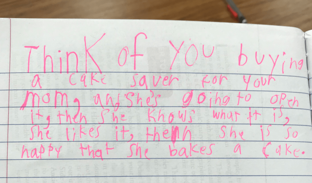 My second grader Rylee is not yet worried about line breaks, but she heard the rhythm and sentiment of Nikki’s poem and wrote this (hands off from me) in her notebook.