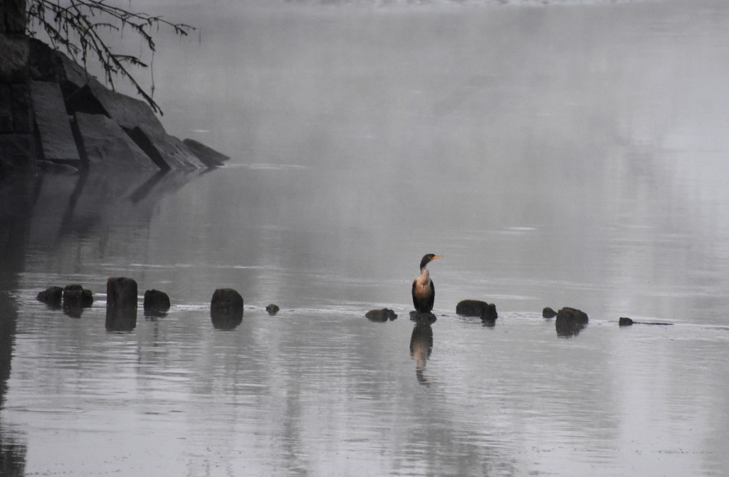 Take a walk with me on this chilly day. The temperature dropped during the day yesterday from a rainy 55 degrees to a frigid 35 degrees with winds close to 20 mph. Bundle up in your winter coat and gloves. Did you bring your wool socks? As we walk past the bayou and along the road, we come to an open field. Watch your step because the ground is uneven here, and you may step in a puddle.