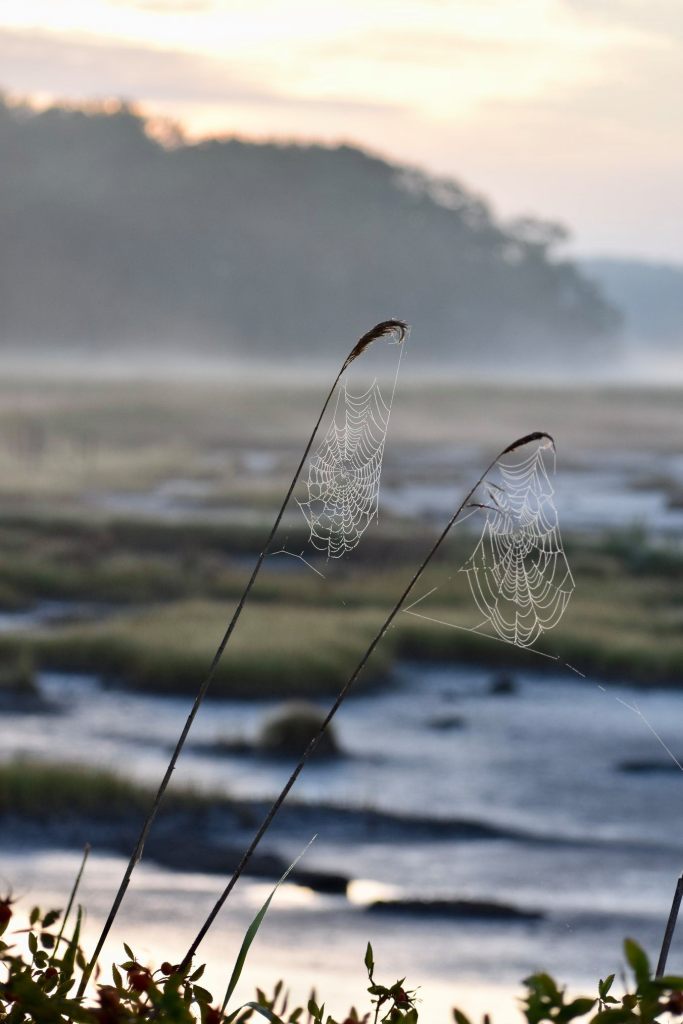 I chose to focus on the fulcrum that binds the web to the marsh grass.