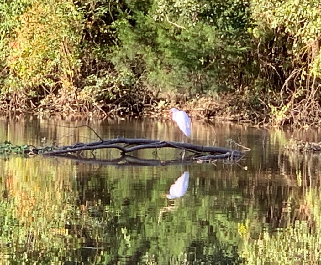 We’ve had a few hurricanes this year. Of course, the year 2020 is cursed as you know, but even for a curse, five hurricanes have threatened our state of Louisiana. Five! One of them, Delta, came pretty close to us here in bayou country. So with blues and hurricanes on my mind, I looked at this picture on my phone of a great white egret in the bayou a few days after Hurricane Delta. What do egrets do during a hurricane?