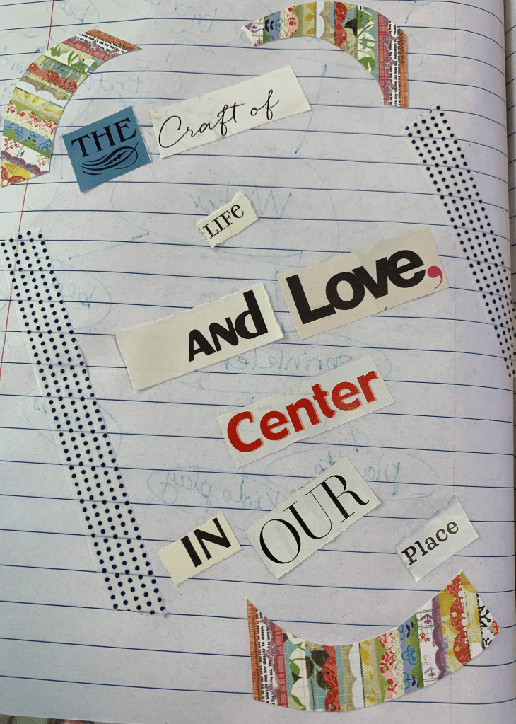 Lately I have been using magazine collage to explore creativity. I am finding that it leads to inspiration for writing. The process of design, finding images I love, cutting, placing, gluing bring my mind to a place of rest where creativity can flow.