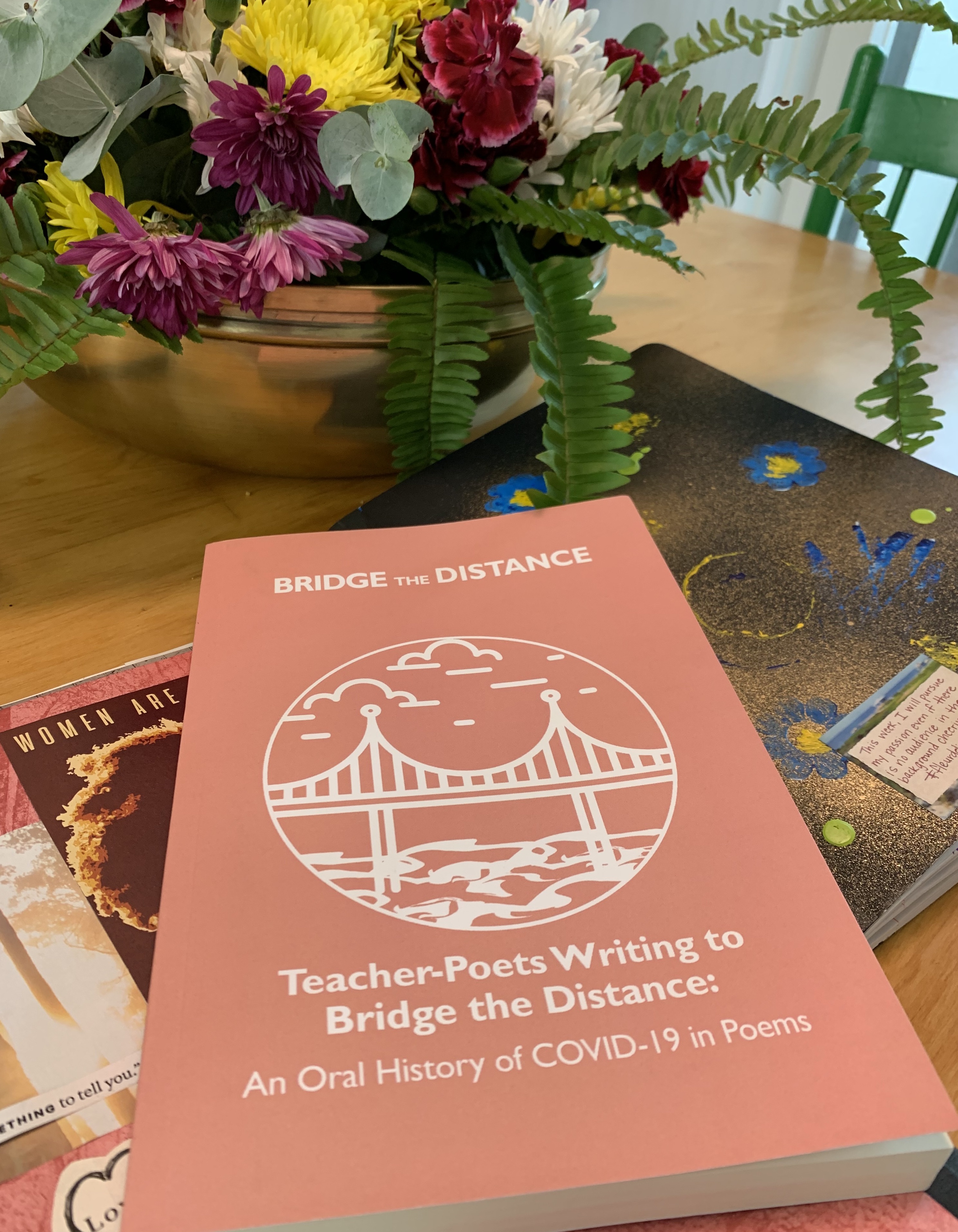 With the help of colleagues, each volunteer was interviewed through a Zoom meeting and our contributed poems have been curated into a collection entitled Bridge the Distance, Teacher-Poets Writing to Bridge the Distance: An Oral History of COVID-19 in Poems. You can click the link to read the manuscript or order a hard copy.