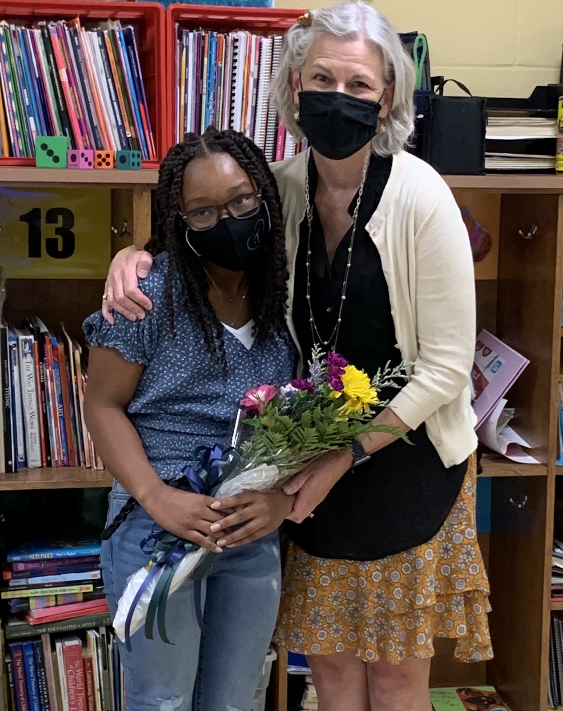 Two weeks ago I received an email from Lowell Milken to call them to set up a Zoom interview with Chloe. They would not tell me if she had won, but they said that I should invite the principal and her parents. I also invited our superintendent and the Sped supervisor. Finally on Sept. 22, ten minutes before the interview was going to start, I told Chloe about it. We had enough time to brainstorm some questions that they may have for her. I set her up in front of my computer, signed in to Zoom, and opened the door to let our guests in. She held up beautifully under pressure.
