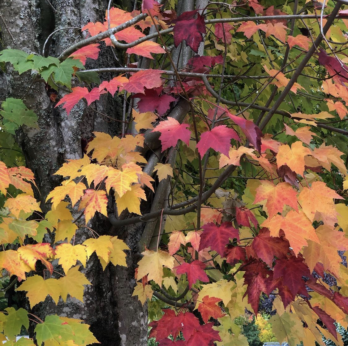 This photo comes from the Northwest where my blogging friend Ramona Behnke lives and writes at Pleasures from the Page. We do not get this kind of color here. Most of our trees are live oaks and pines that stay green and cypress trees that drop brown fuzzies. But I do love a good photograph of fall leaves.