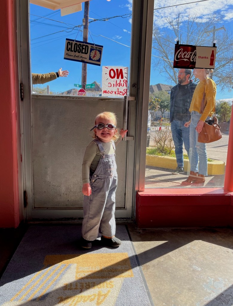 This week I am posting a photo that my daughter Maggie took of her 3 year old, my grandson Leo as they were leaving a diner. That’s as much as I want to tell you because when I saw this picture, I thought there’s a story in this photo. You can write the story in your small poem. Have fun with it.