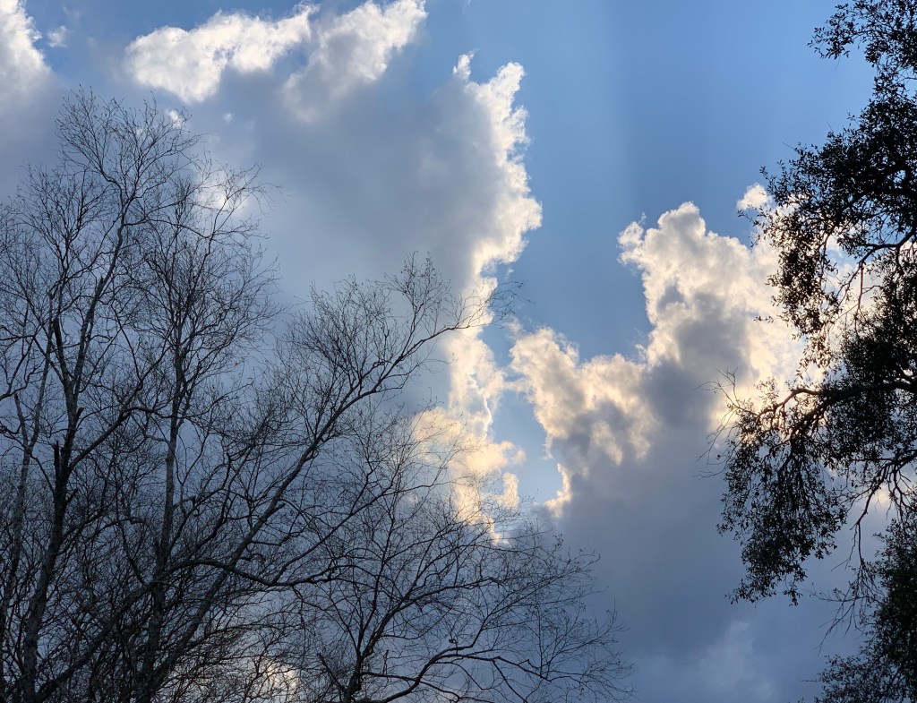 One of my favorite things, a close second to seeing a rainbow, is a bright sun burst through a cloud. And with the bare branches of winter trees, this image fills me with hope.