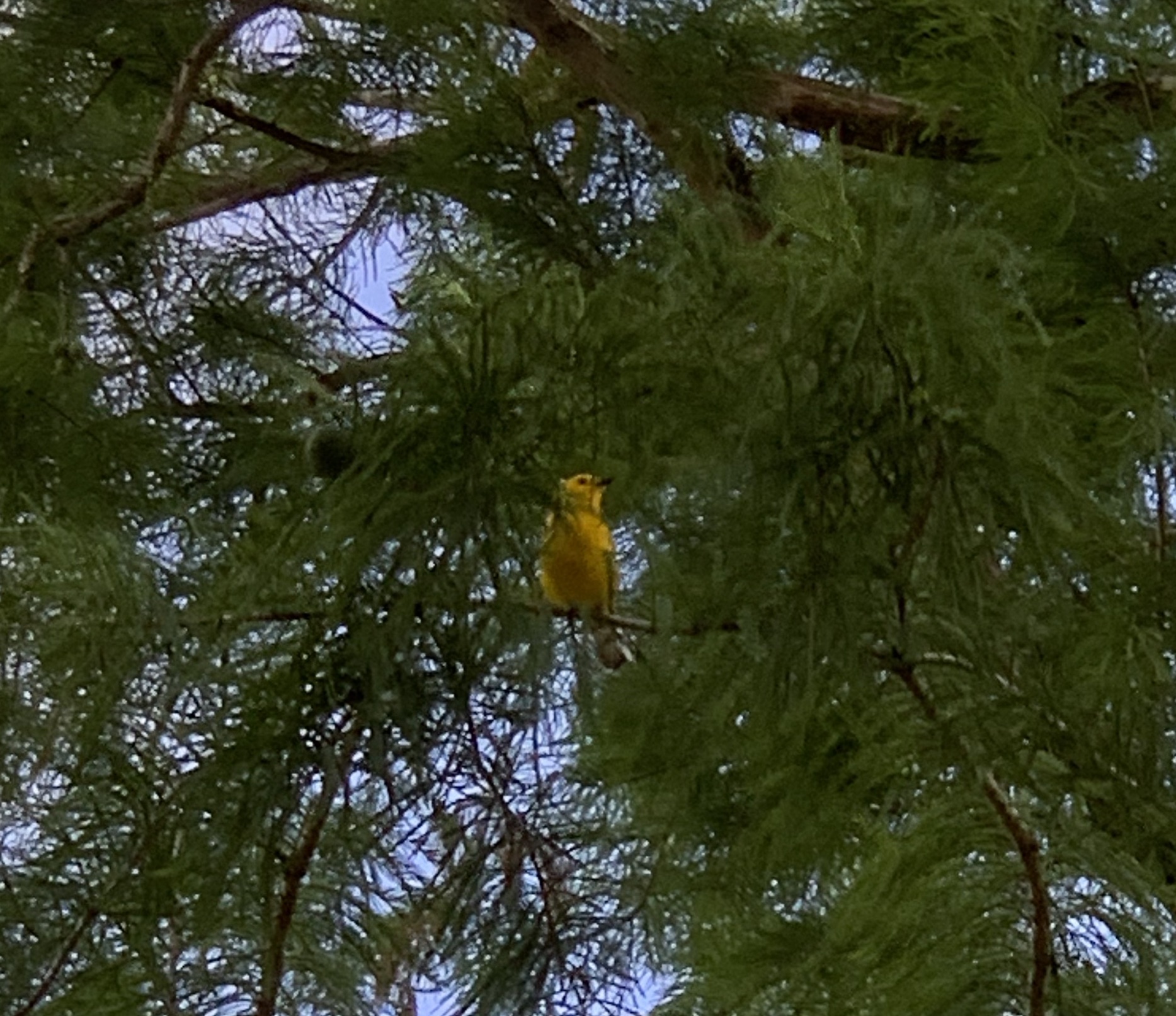 Me: Patti, I know some people believe their parents come back to them in cardinals, but I think my dad is visiting me in a Prothonotary Warbler.