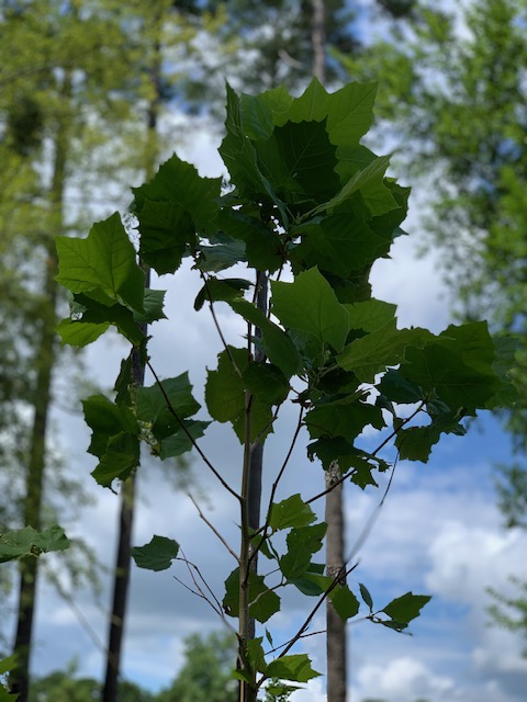 All that is really beside the point of the photo today. In the midst of mayhem and moving, I walked with Mom to Dad’s tree. We had a sycamore tree planted on the grounds. Mom loves going out to visit the tree. It has already grown about 2 feet in three months. It’s not even close to the height of the surrounding pines, but there is something serene and strong about it.