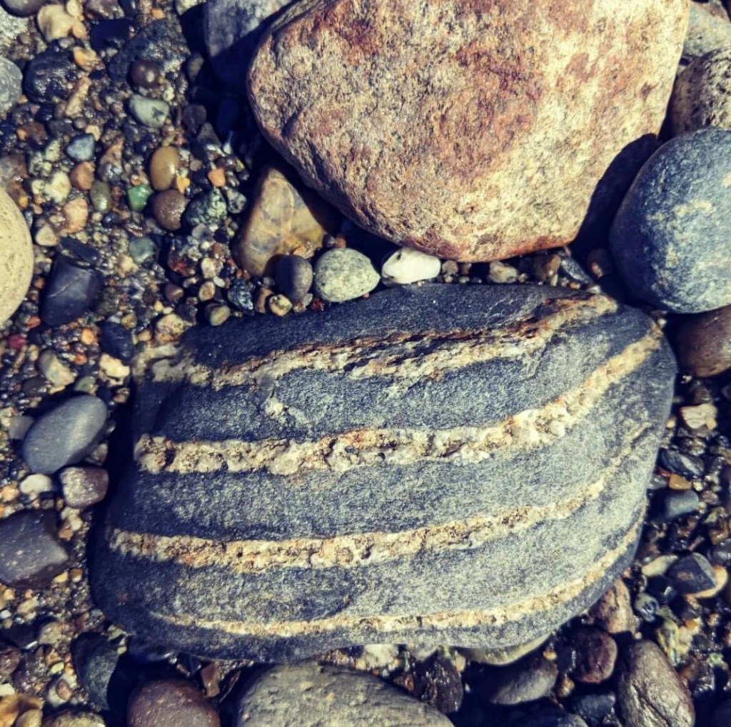 Let’s take a look at the photograph of rocks. Are you drawn in by the different colors of rocks or by the rings around the large stone? Let the muse take you where it will.