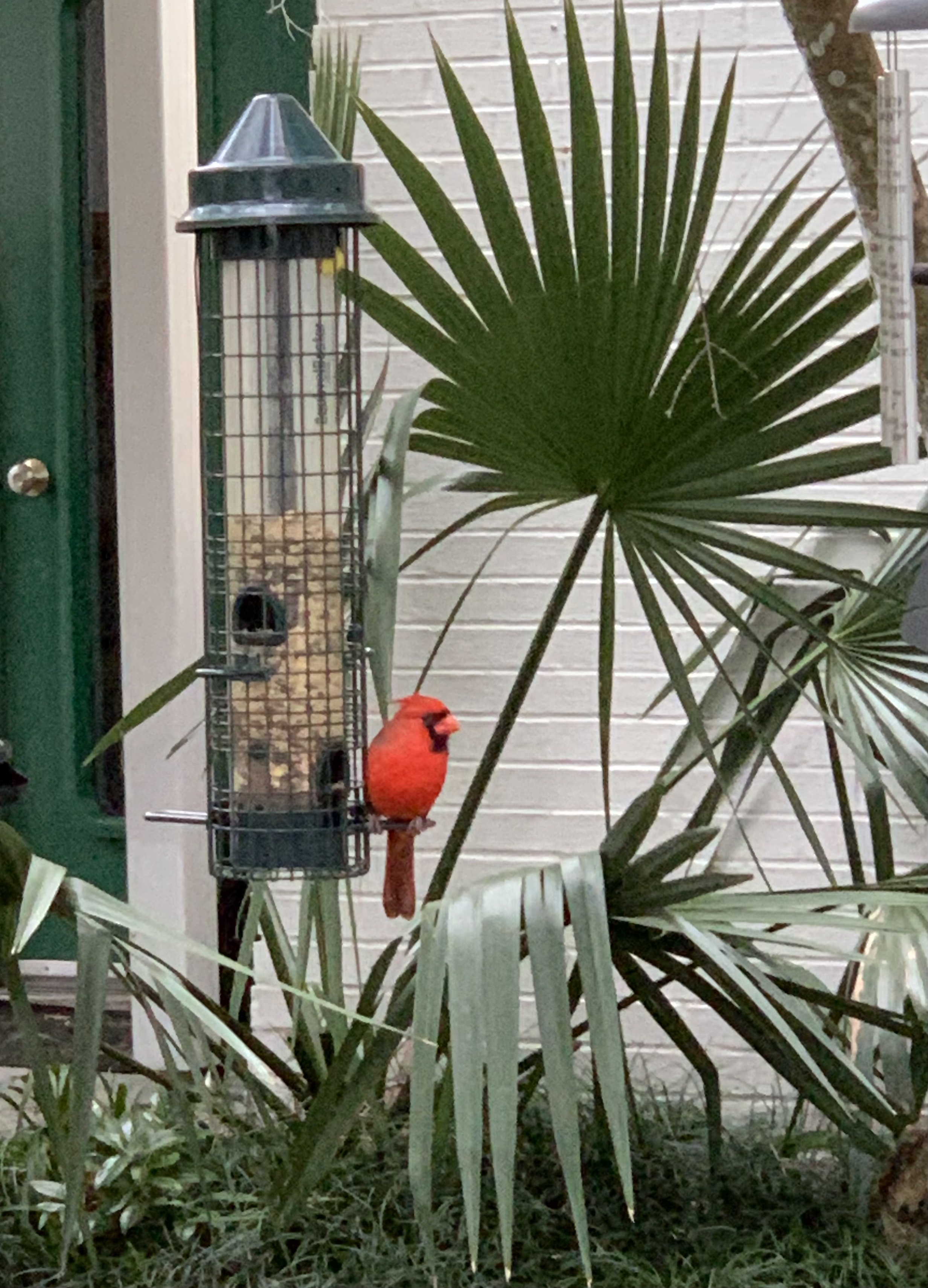 We had a cold front pass through the night. The air became damp and cold. As I arrived home from a rather blustery carpool line, I stopped short of the carport because something bright red caught my eye. Was it because of the cold that the cardinal, fluffed up and still, stayed at the feeder? I quickly rolled the window down and shot a picture. Some people believe the red bird is the sign of a loved one who has passed. Monday was the 18th anniversary of my father-in-law’s death. My mother-in-law reminded me. I’m sad to think I forgot. Maybe the cardinal was his way of saying it was OK.