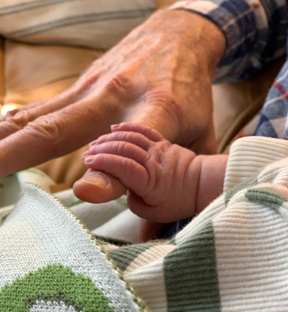 On Christmas Day, my husband and I were separated for the first Christmas in 40 years. He traveled to New Orleans on Christmas Day to meet his new grandchild and have a bowl of gumbo. Baby June is a big baby, and her fingers are long. I marveled at them as Jeff (Papère) held her tiny hand. This is a more personal image than I usually post. Forgive me, I’m smitten.