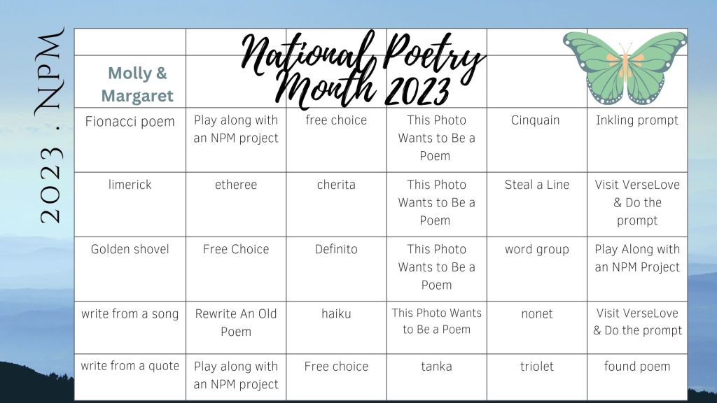 I got sidetracked from using the daily calendar that Molly and I created for our National Poetry Month Project. Even though we decided it was flexible and not a commitment, I wanted to check off another form with today’s poem.