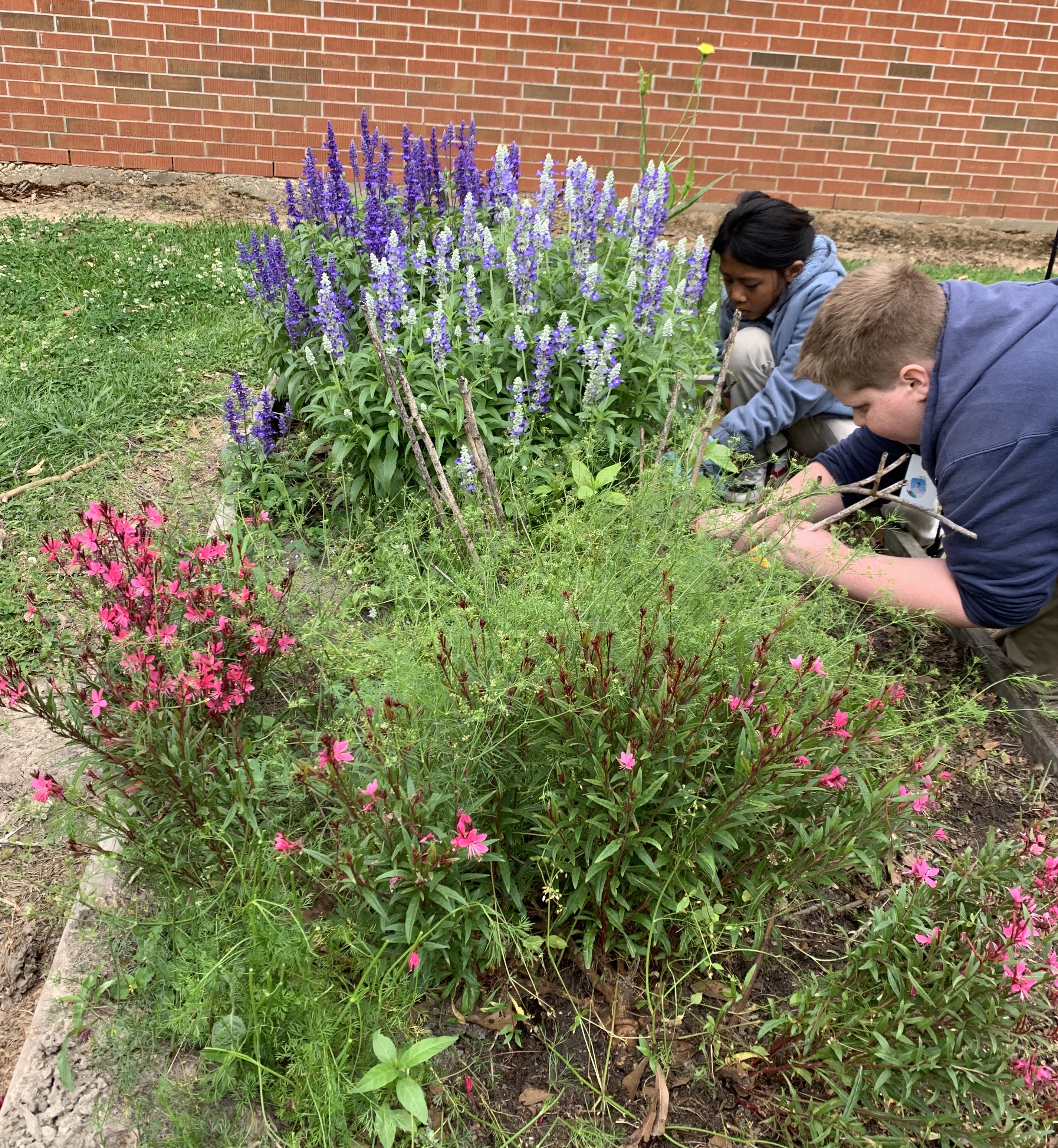 We’ve started getting the school butterfly garden ready for spring. I was a bit overwhelmed and excited to see all the plants that survived the winter. I was particularly taken by the purple salvia which last year was a small percentage of planter box space and now is practically taking over. But it’s so beautiful.