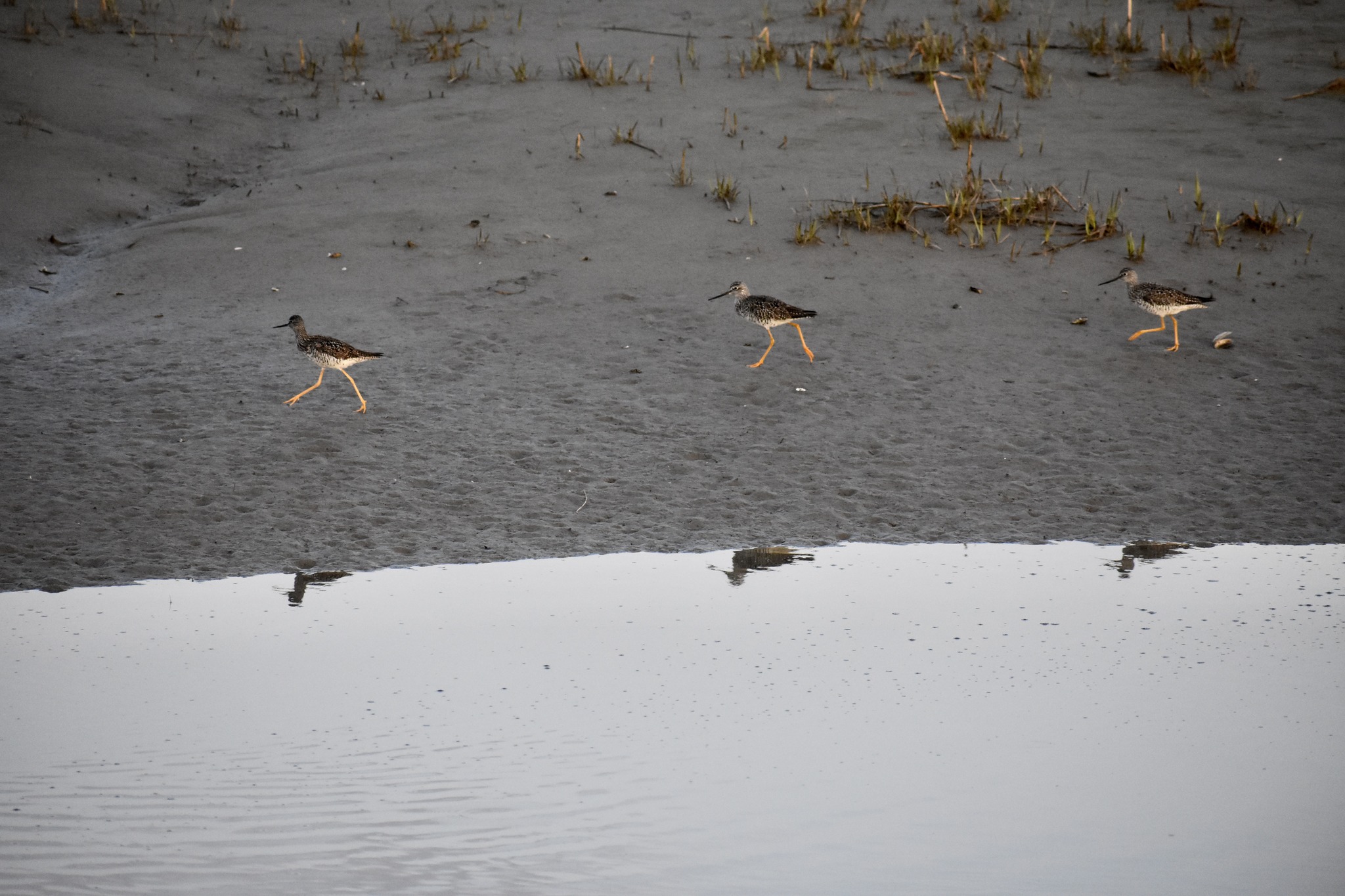 Molly Hogan captured this funny photo on a recent outing into the marsh in Maine. I love how she captured the reflection as well. These shorebirds are called yellowlegs for the obvious reason that they have yellow legs, but I think watching them skitter along the shore would bring a smile to anyone’s face.