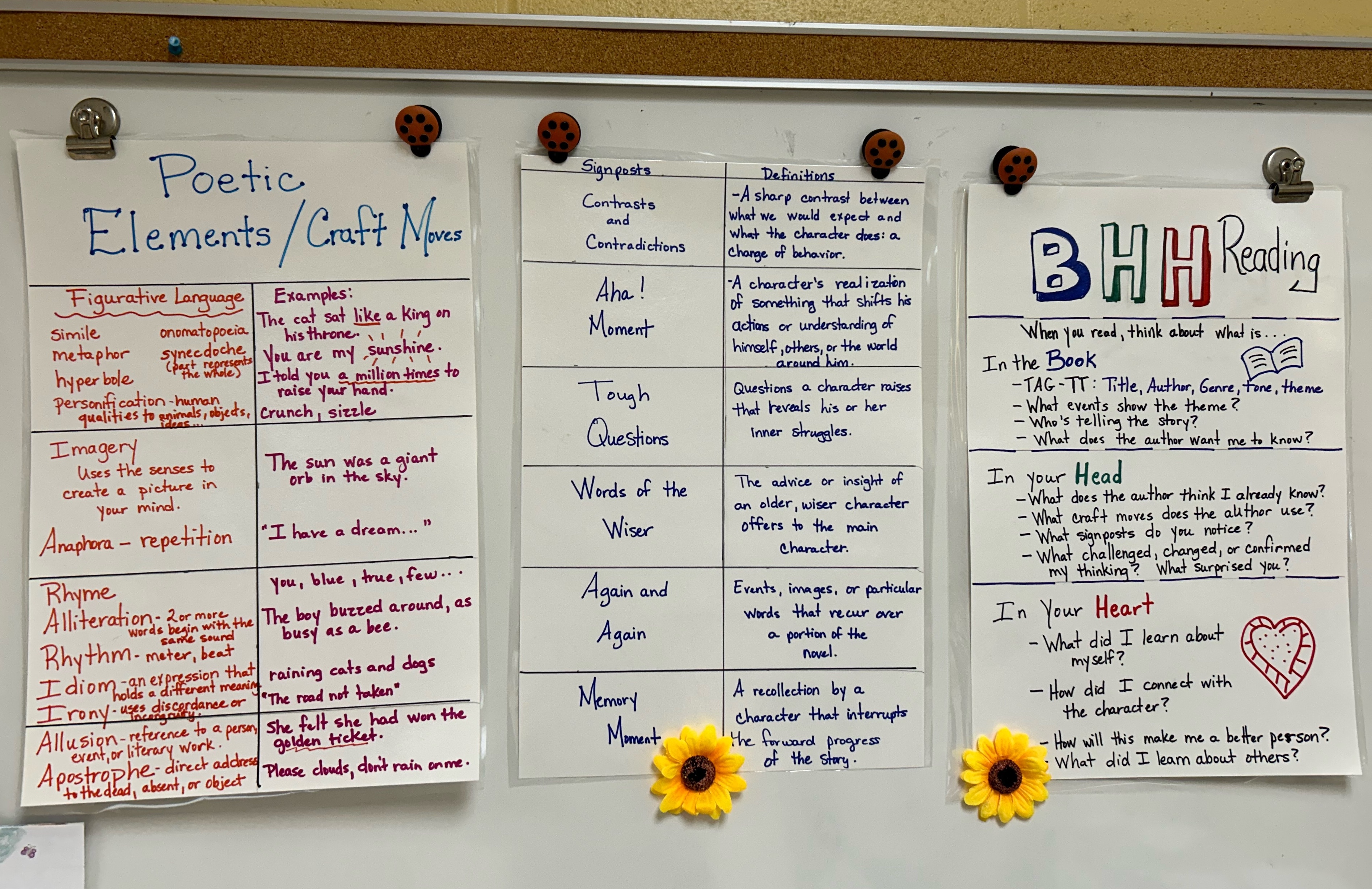 Anchor Charts for Craft Elements, Notice and Note Signposts, and the BHH format for response to reading.
