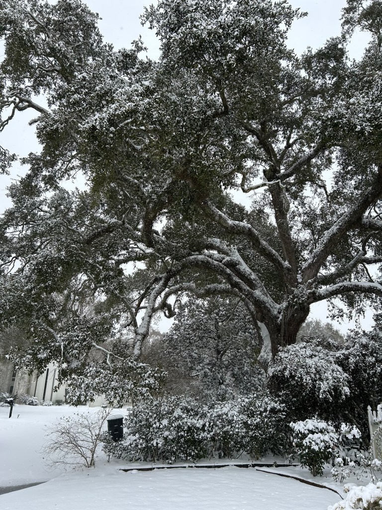 I woke up this morning to snow, snow, snow! That may not be so unusual for those of you in most of the country, but to us in South Louisiana, this never happens. It’s never happened in my 42+ years of living here. The prediction was for 4-8 inches, and I believe we have reached the higher mark. I’m sure it’s a problem for some because our systems are not prepared for this, but I’m enjoying all the texts of photos and videos of my grandchildren. I’m staying warm and safe.