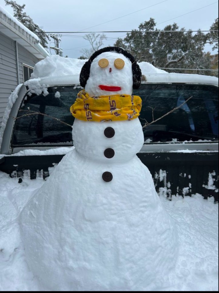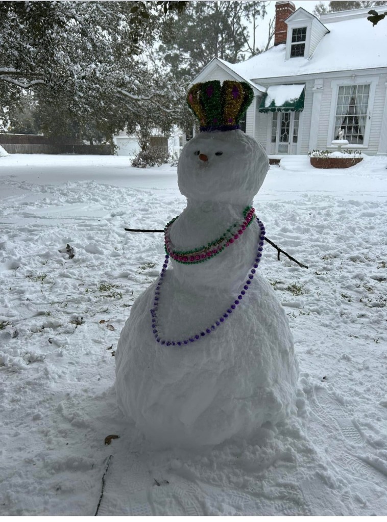 Snowman On truckbed Rare Louisiana snow Old family traditions reinvented Couillon