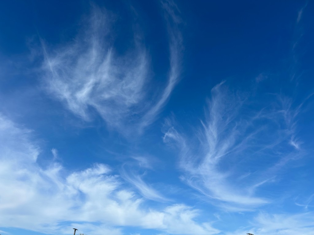 I love to look up at the sky. On any given day, the sky can change my mood. On the day I took this picture, the clouds were wispy cirrus clouds that mean high air pressure and cooler temperatures. They are a happy contrast to storm clouds or the grey stratus of a winter day. Even as an adult I enjoy looking for images in the clouds. I took this photo while out on carline duty, so only now do I have the time to see the shapes. Do you do this? Can you find an image in the clouds? What do you imagine?