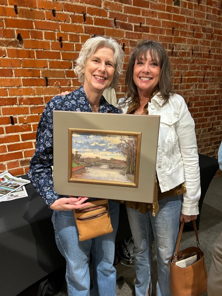 Karen is so happy we bought her painting of the Daigre Bridge.