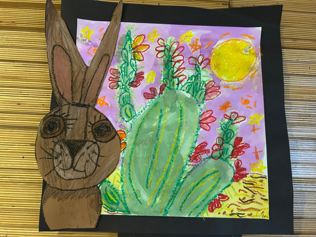 On Saturday I went to downtown Lafayette for the Student Arts Expo at the Acadiana Center for the Arts. Leo, Stella, and their dad met me there. We found Leo’s art work of the Jackrabbit.